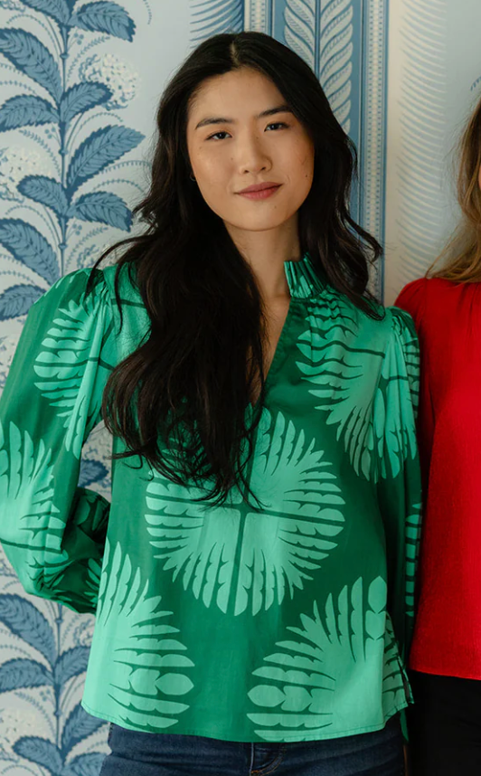 The Phoebe top is your new perfect grab-and-go top! It will pair perfectly with your favorite pair of slacks or shorts to complete the look! The Phoebe features a v-neck, cuffed sleeve, and a ruffled collar stand.