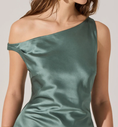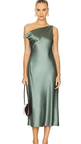 Elain Satin Off Shoulder Midi Dress. Ideal for weddings and bridesmaid dresses, the midi length makes it a versatile addition to your wardrobe.