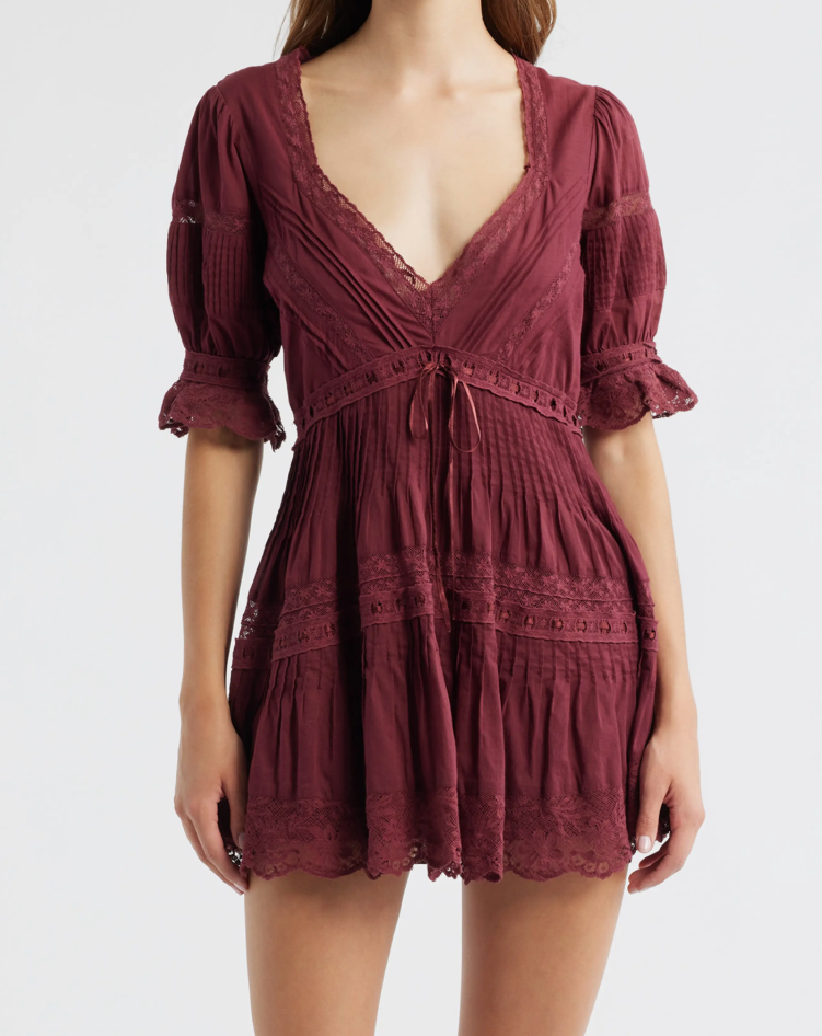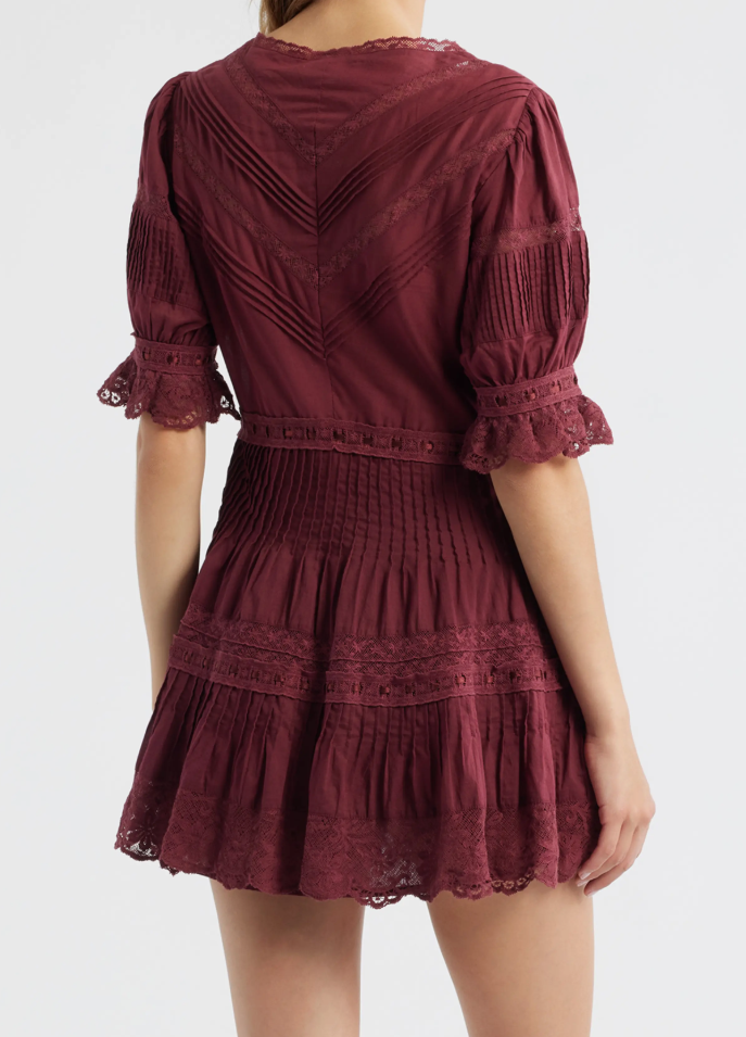 Lilias Dress in 100% organic cotton features lovely lace trims, darling puff sleeves and textured pintucks.