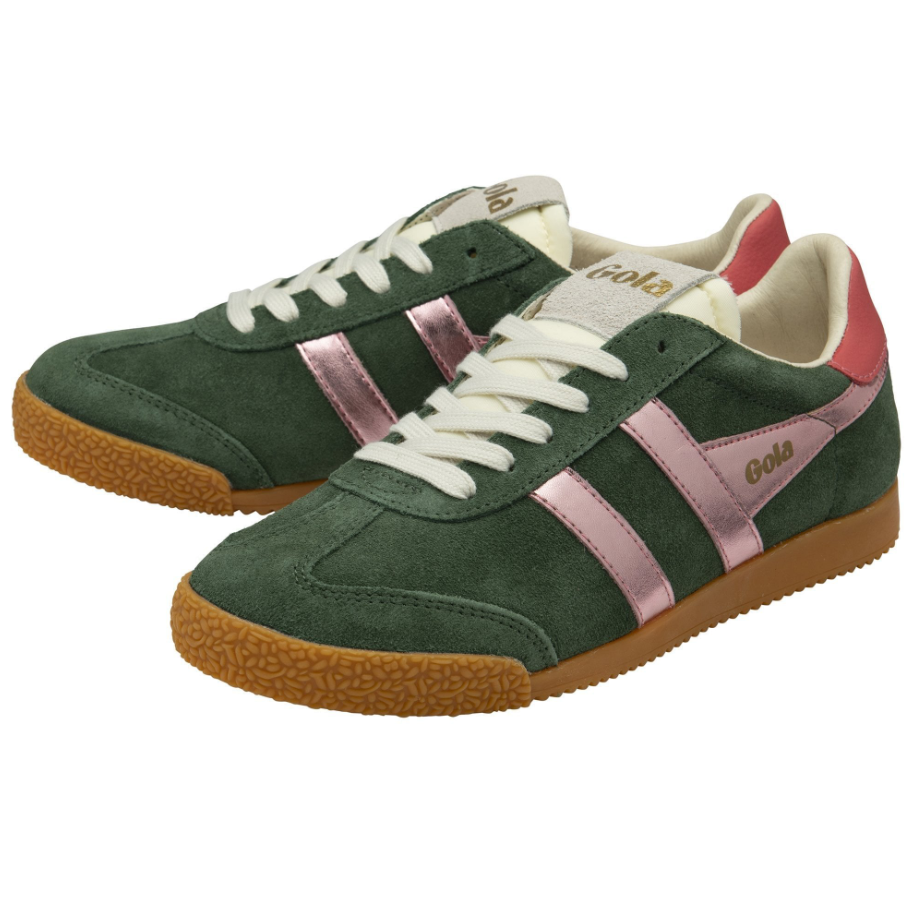 A new addition to the iconic Elan family, Gola Elan Glitz revises the signature Gola wingflash trim, with a dose of soft metallic tones to compliment the evergreen suede upper and coral back heel tab. With opulent color stories taking center stage, enjoy transitioning this classic women’s sneaker from day to night with ease.