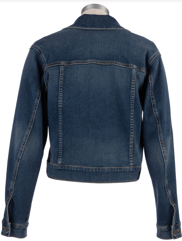 The Julia Denim Jacket features a semi-fit design, offering a flattering shape with just the right amount of relaxed style for versatile, everyday wear. Soft 97% Cotton, 3% Spandex denim.