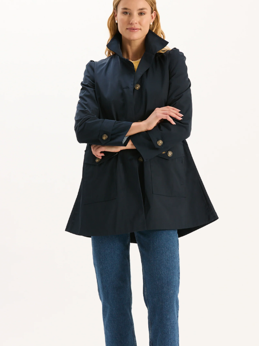 The Sutton Water Repellent Trench is designed to keep you dry without sacrificing style. The silhouette features a high stand collar, button-front closure, and tailored seams for a flattering, structured fit. With roomy flap pockets, this coat is both practical and polished. Crafted from a durable, weather-ready fabric,