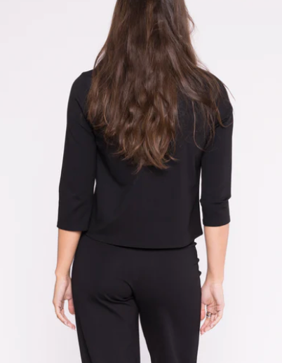 Crafted from our signature luxurious ponte knit, this elevated essential has the structured appearance of suiting with the soft, flexible comfort of a knit. It’s designed to pair effortlessly with any Ripley Rader iconic pant, from wide-leg to cropped, creating a clean, minimalist look that’s both timeless and on-trend.