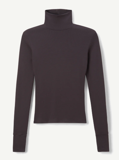 Crafted from our signature cotton rib modal, the hayden top is your answer to elevated everyday dressing. this body-hugging style features a tall turtleneck for a refined, polished look that still feels easy. a sister to our lauryn mock neck, hayden brings a little more drama up top. wear it with your most relaxed denim for that just-right contrast.